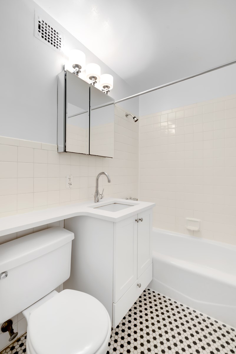 This spacious newly renovated 1BR (Flex 2BR) apartment features a gourmet kitchen equipped with custom cabinetry, Caesarstone countertops plus stainless steel appliances, including dishwasher.